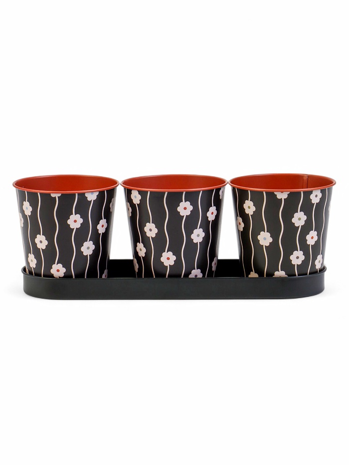 Набор кашпо на подставке «Ведёрко. Цветочки», 29×10×10 см
