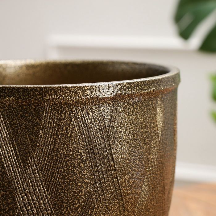 УЦЕНКА Горшок цветочный с поддоном 5 л, темное золото керамика, «Греция» (М)