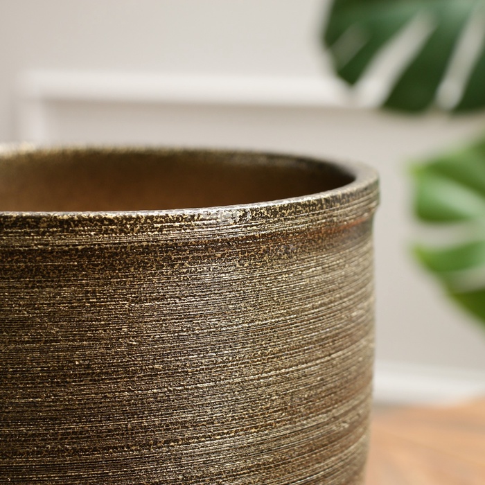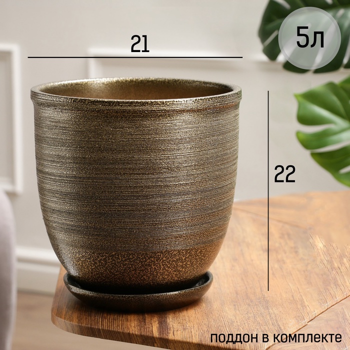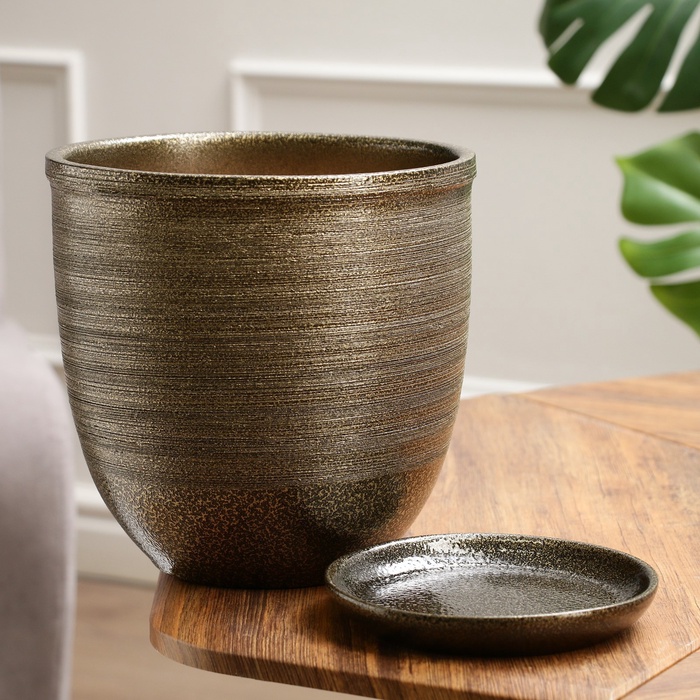 УЦЕНКА Горшок цветочный с поддоном 5 л, темное золото керамика, «Золото» (М)