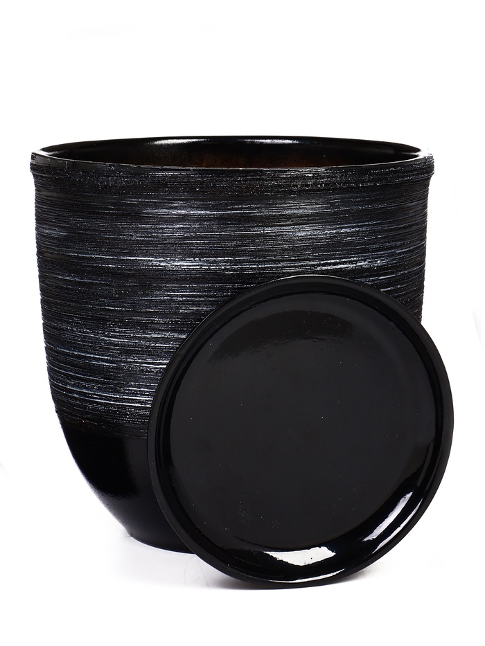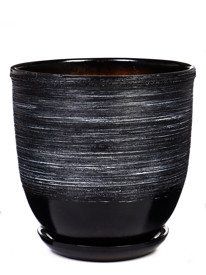 УЦЕНКА Горшок цветочный с поддоном 5л, черный керамика, "Космос" (М)