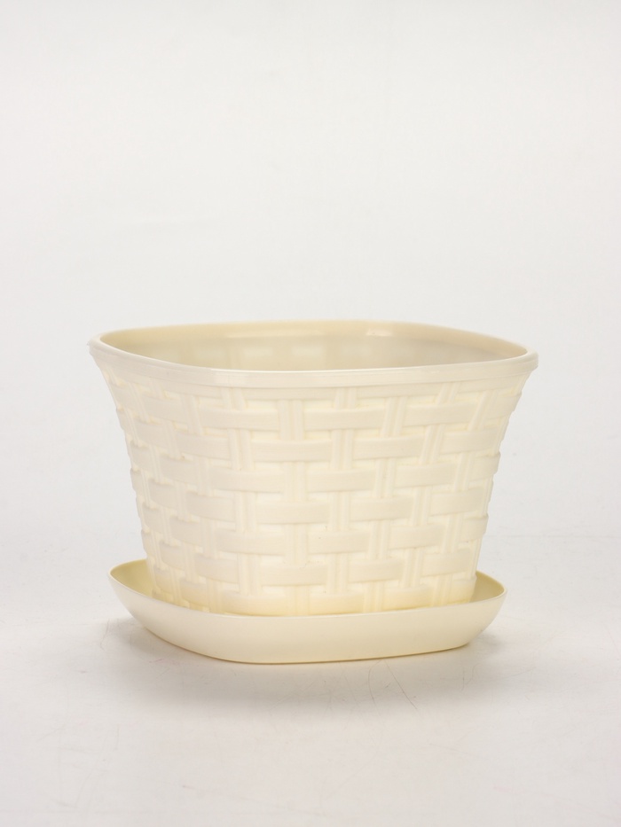 Кашпо для цветов «Ротанг», 1.2 л, 14.5×14.5×10.4 см, пластиковое, с поддоном, бежевое
