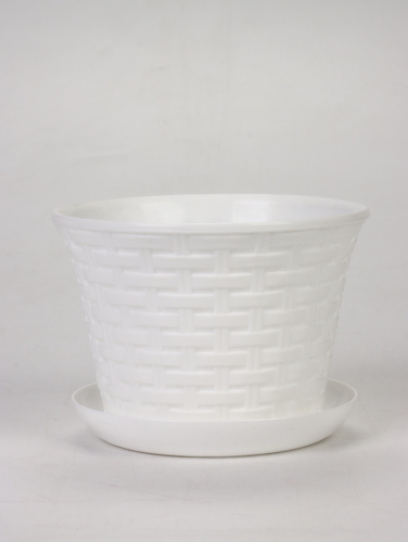 Кашпо для цветов «Ротанг», 2.1 л, d=18 см, h=13.2 см, пластиковое, с поддоном, белое