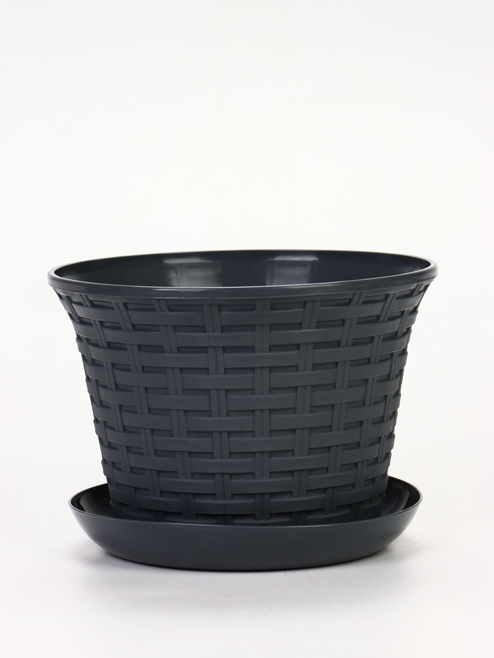Кашпо для цветов «Ротанг», 3 л, d=20.3 см, h=15 см, пластиковое, с поддоном, серое