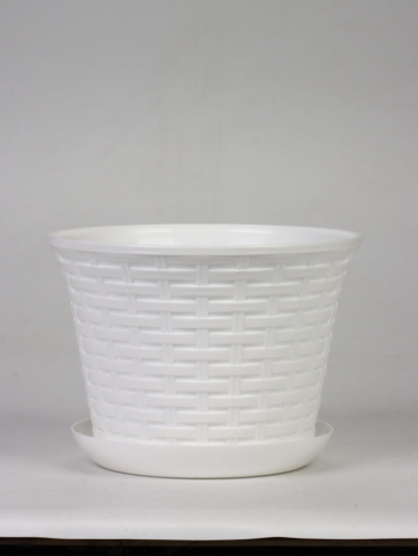 Кашпо для цветов «Ротанг», 4 л, d=22.2 см, h=16.6 см, пластиковое, с поддоном, белое