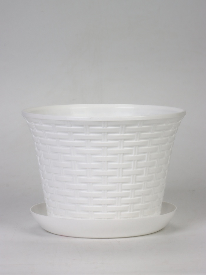 Кашпо для цветов «Ротанг», 6.1 л, d=25.5 см, h=18.9 см, пластиковое, с поддоном, белое