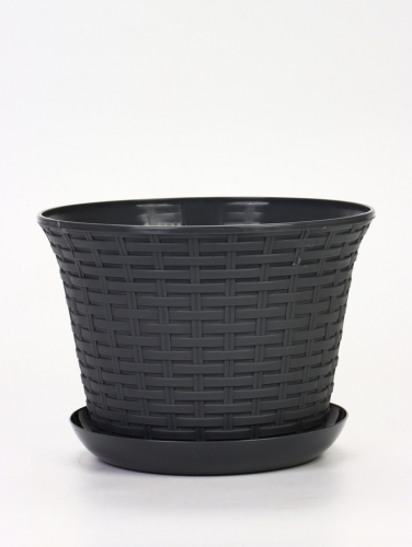 Кашпо для цветов «Ротанг», 8 л, d=27.5 см, h=20.5 см, пластиковое, с поддоном, серое