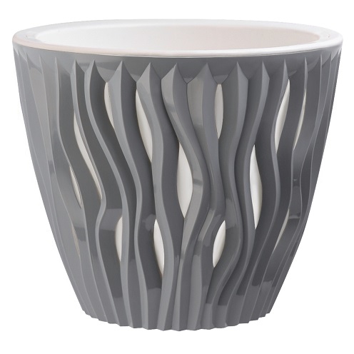 Выбор кашпо для растения – непростая задача для любителей комнатных цветов. Цветочные кашпо для растений из коллекции «Вдохновение» не оставят равнодушным ни одного человека! Кашпо с объёмной волнообразной текстурой идеально подходит для создания индивидуального дизайна с зелёными живыми растениями. Конструкция предусматривает удобные технологические ручки, которые упрощают уход (пересадка) за растением. Состоит из основного декоративного горшка и внутренней вставки с дренажными отверстиями. Наличие такой дренажной вставки обеспечивает отвод воды от грунта и позволяет дышать корневой системе растения. Кашпо окрашено в светло-серый цвет, изготовлено из надёжного пластика, благодаря чему отличается прочностью, устойчивостью к ультрафиолету и перепадам температур. Объём – 3 литра, диаметр – 19,5 см.