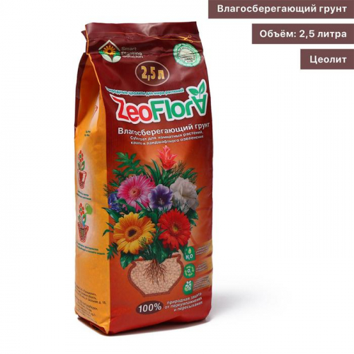 Субстрат минеральный ZeoFlora для растений, цеолит, почвоулучшитель, 2.5 л, влагосберегающий грунт, фракция 1-3 мм
