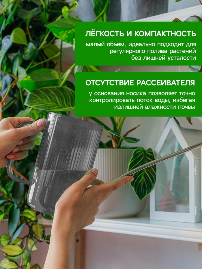 * Лёгкость и компактность — малый объём, идеально подходит для регулярного полива растений без лишней усталости.