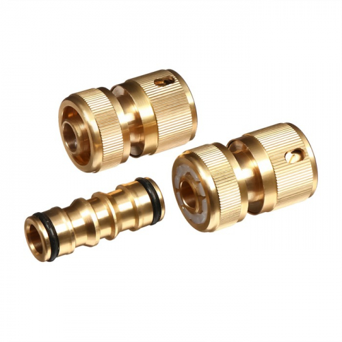 Набор для быстросъёмного соединения шлангов, 1/2" (12 мм), 3 предмета (латунь): коннектор, коннектор с аквастопом, переходник, Greengo
