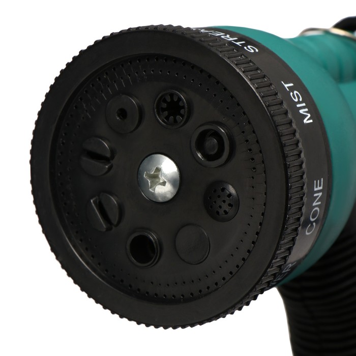 Напор воды можно изменять при помощи регулировочного винта на корпусе. Также вы можете изменять тип струи благодаря удобному регулятору, который имеет 8 режимов, интенсивность полива варьируется от «легкого летнего дождя» до мощной струи.