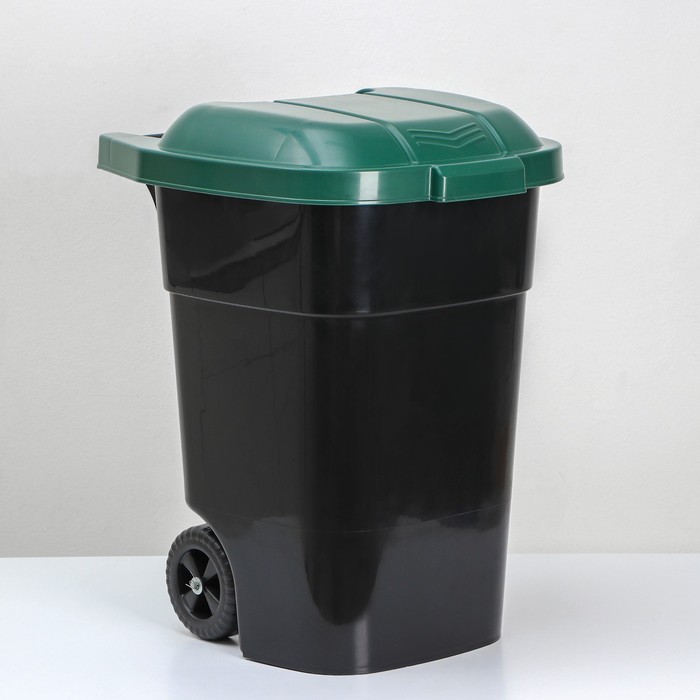 Мусорный бак с крышкой «Садовый», 65 л, на колёсиках, чёрный, зелёный