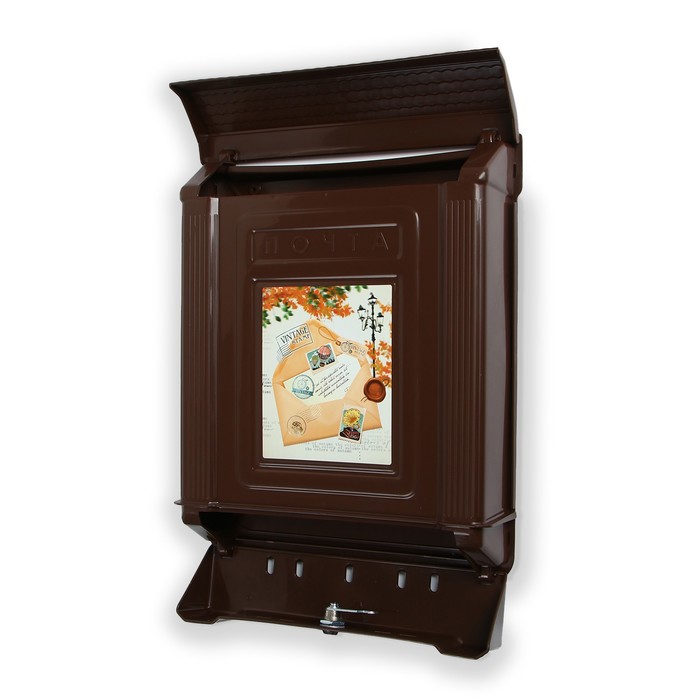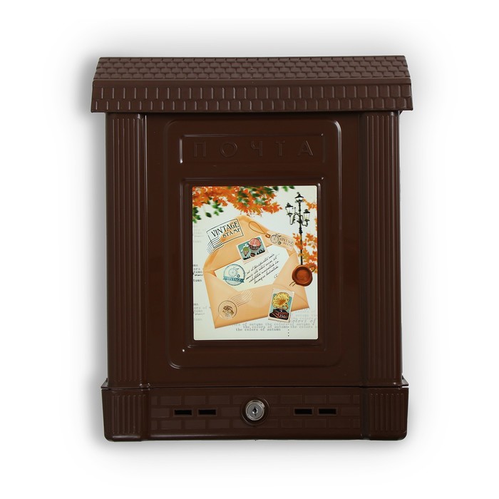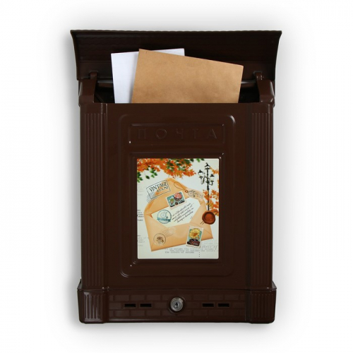 Ящик почтовый, пластиковый, «Декор», с замком, коричневый