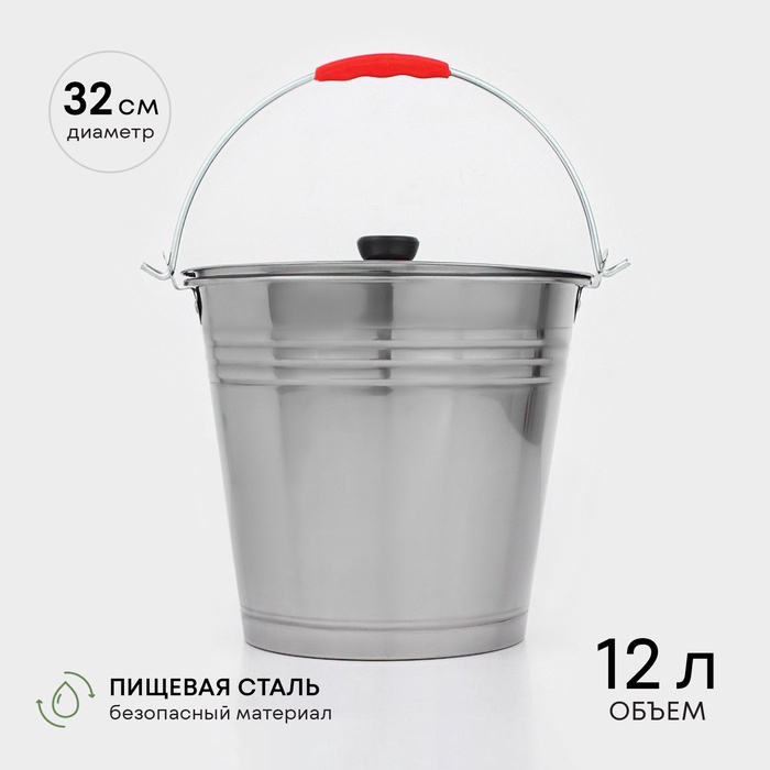 Ведро, 12 л, с крышкой, нержавеющая сталь