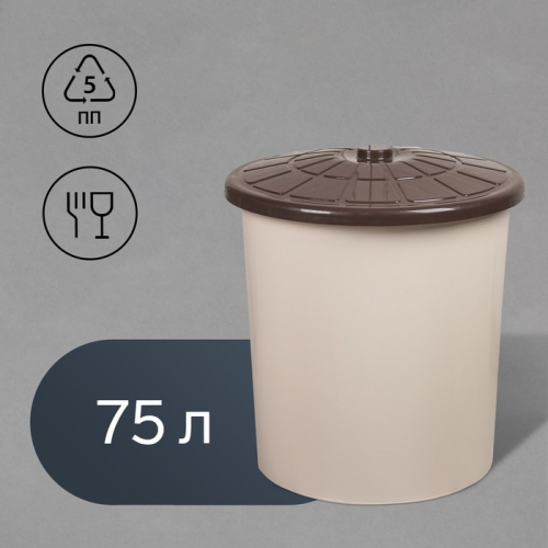 Бак пищевой, 75 л, пластиковый, с крышкой, бежевый