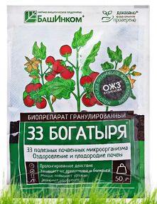 Биопрепарат 33 Богатыря (пакет 50 г) (почвооздоравливающ. препарат)/ 36 шт БашИнком