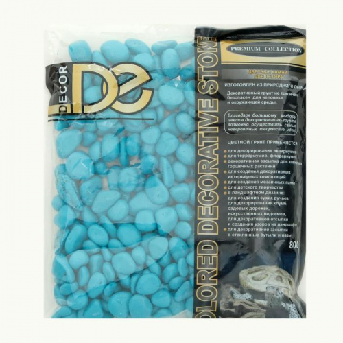 Грунт для аквариума DECOR DE «Галька цветная», фр. 8-12 мм, голубая, 800 г