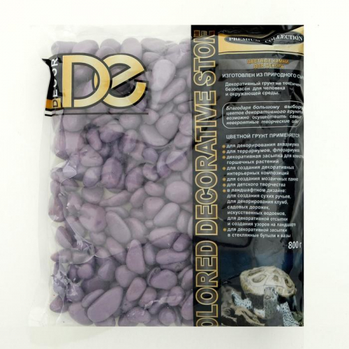Грунт для аквариума DECOR DE «Галька цветная», фр. 8-12 мм, сиреневая 800 г