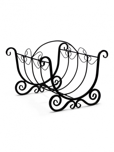 * Ажурная ковка и чёрное покрытие: стенки и опоры дровницы украшены сквозным кованым узором. Такой дизайн создаёт эффект лёгкости, сохраняя общую строгость формы. Чёрный матовый цвет хорошо сочетается с большинством отделок каминной зоны.