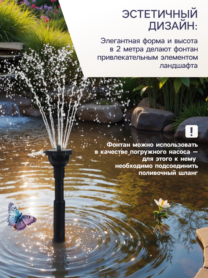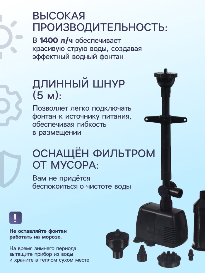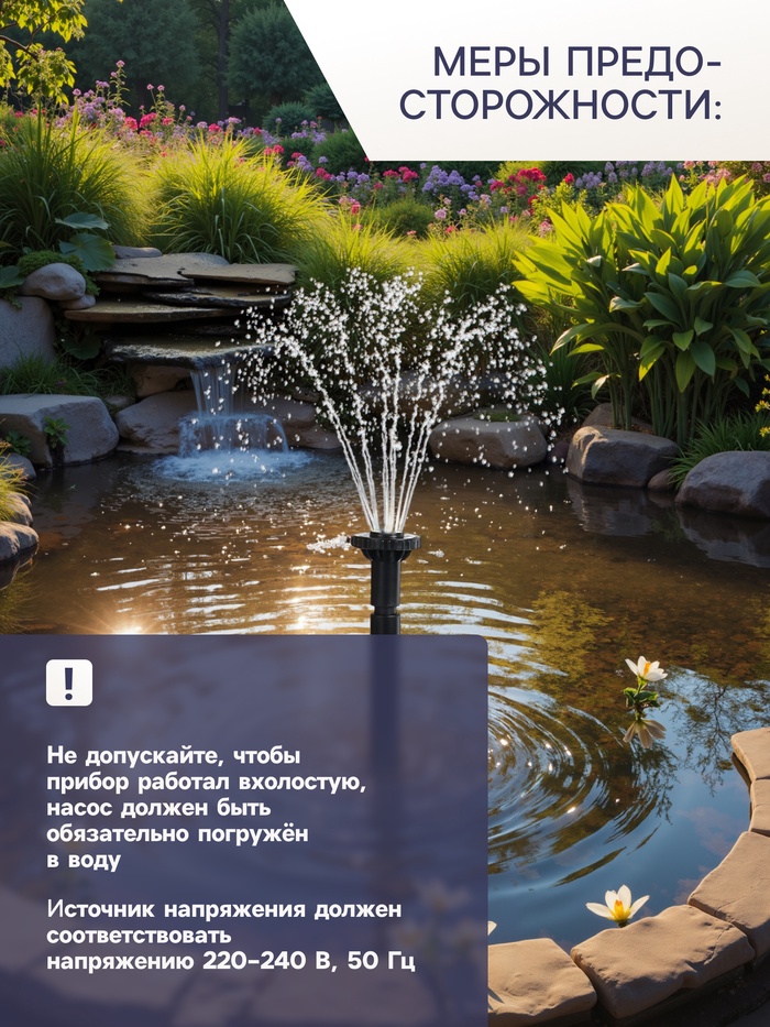 * Простая установка. Фонтан очень легко установить, нужно только погрузить его в водоём и подключить к сети.