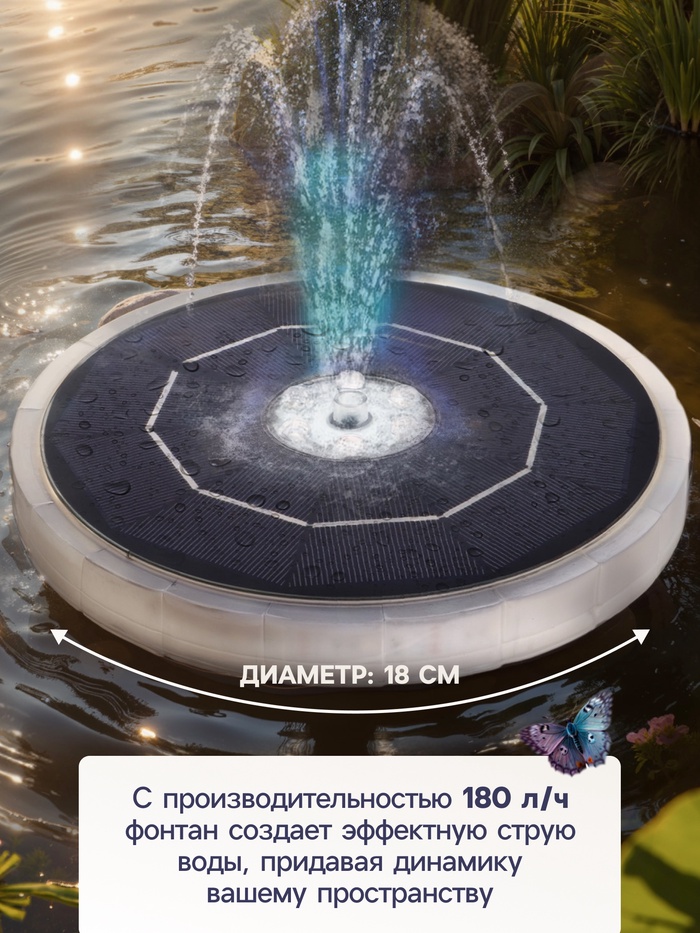 Фонтан садовый с подсветкой JT-180-23 LED, 7 Вт, h=55 см, 180 л/ч, на солнечной батарее
