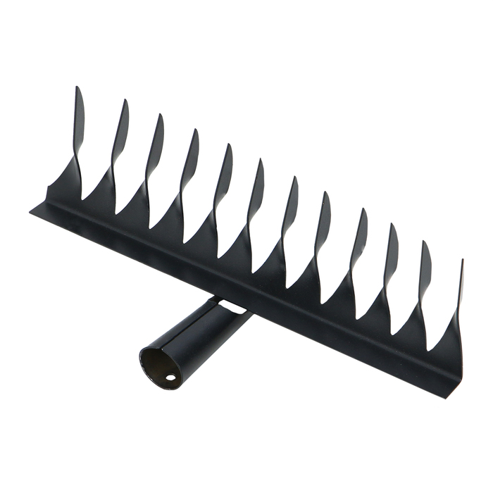 Грабли с витыми зубьями без черенка — насадка для обработки почвы и борьбы с сорняками. Двенадцать металлических зубьев создают рабочую поверхность, которая разрыхляет грунт и выдергивает корневища растений.