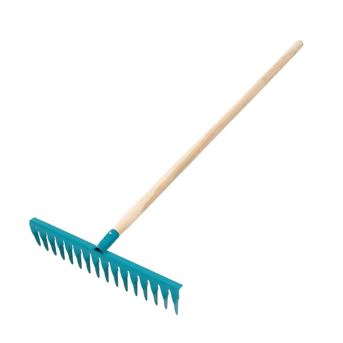 Грабли прямые, повёрнутый зубец, 16 зубцов, металл, деревянный черенок, МИКС