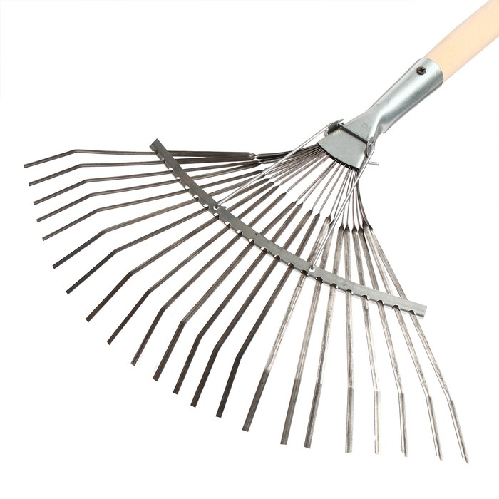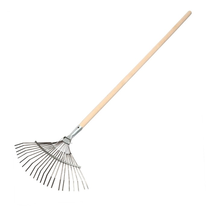 Грабли веерные, пластинчатые, 22 зубца, оцинкованная сталь, деревянный черенок, 1 сорт