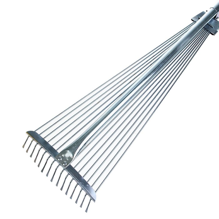 * Бережное воздействие: проволочные зубья скользят между стеблями растений, не повреждая корневую систему и надземную часть. Это сохраняет декоративность цветников и клумб после уборки.