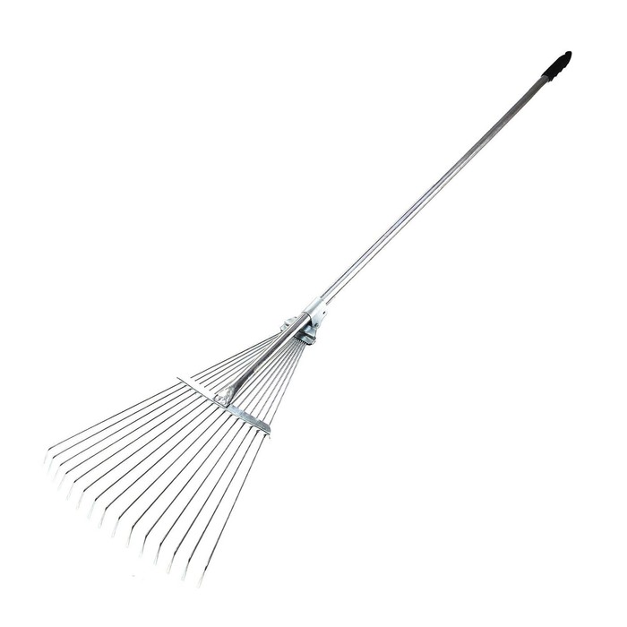 Грабли веерные, проволочные, 15 зубцов, металл, раздвижные, металлический черенок, Greengo