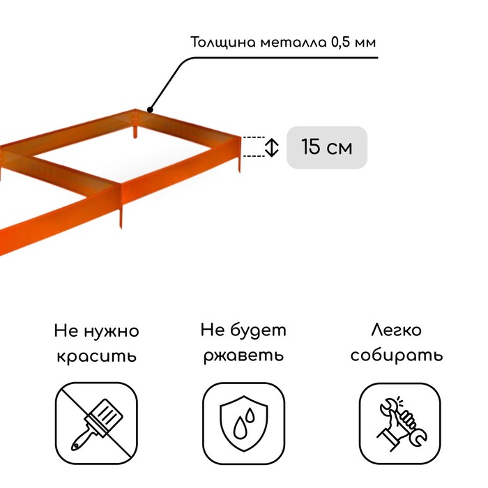 Ограждения для грядок из оцинкованной стали — долговечные и надёжные. Они не разлагаются в почве и выглядят как новые многие годы. Это лёгкий способ придать участку нарядный вид и предотвратить осыпание земли. Изделия просты в эксплуатации: их легко собрать и разобрать.