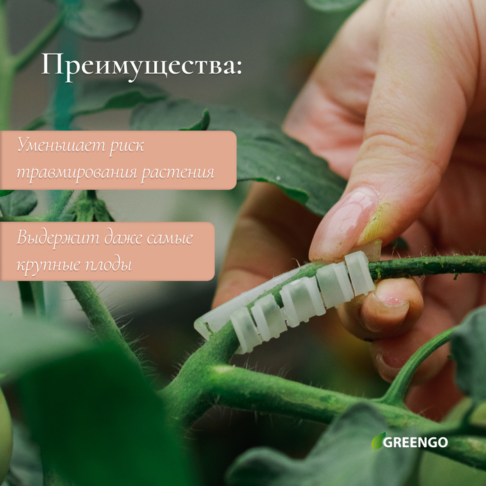 * Уменьшает риск травмирования растения в сравнении с подвязкой шпагатом.