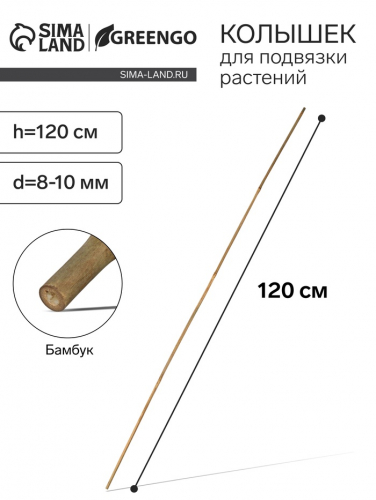 Колышек для подвязки растений, h=120 см, d=8-10 мм, бамбук, Greengo