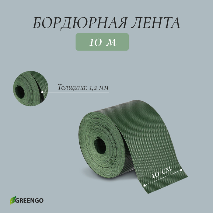 Лента бордюрная, 10 см×10 м, толщина 1.2 мм, пластиковая, зелёная, Greengo