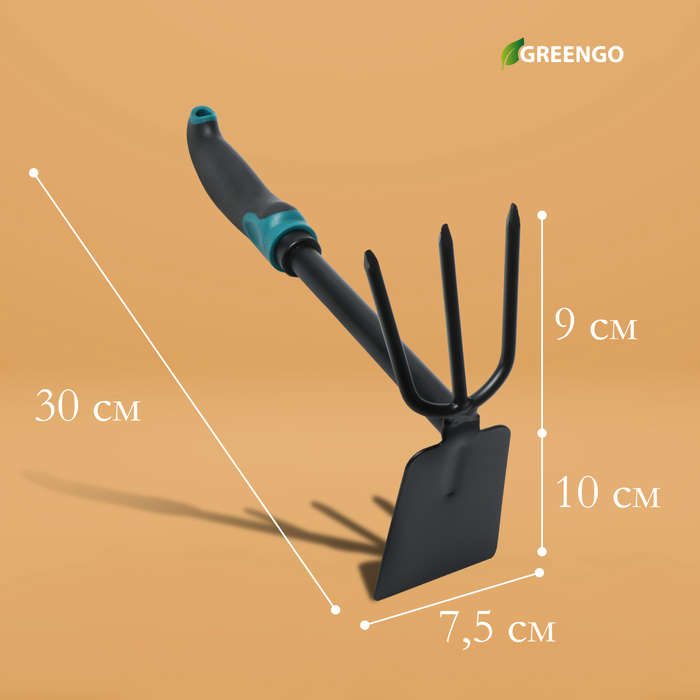 Мотыжка комбинированная Greengo, длина 30 см, 3 зубца, эргономичная прорезиненная ручка