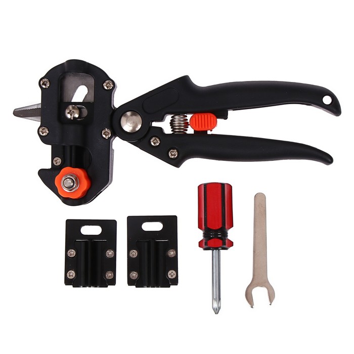 Набор профессиональный: секатор прививочный, 2 насадки, отвёртка, гаечный ключ, в чехле, Greengo