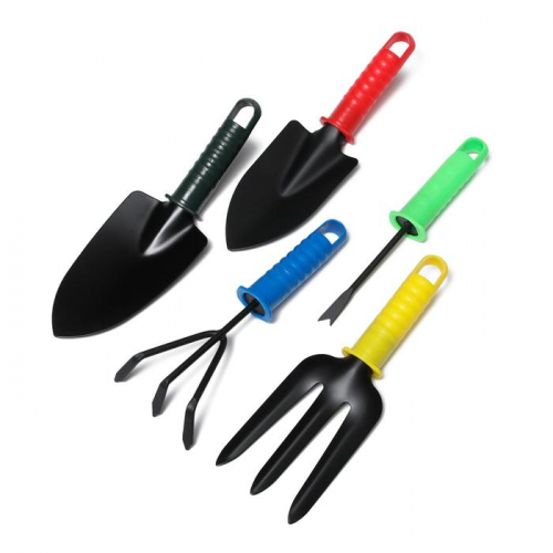 Набор садового инструмента, 5 предметов: 2 совка, рыхлитель, вилка, корнеудалитель, длина 27 см, пластиковые ручки, цвет МИКС, Greengo
