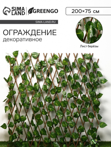 Декоративное ограждение Greengo в виде берёзовых листьев станет изюминкой любого дома или сада. Изделие совсем не требует ухода и будет прекрасно выглядеть даже после длительного использования. С помощью ограждения можно отлично разграничить зоны в одном большом помещении. Вы можете самостоятельно отрегулировать нужную длину: конструкция сделана по принципу «гармошки».