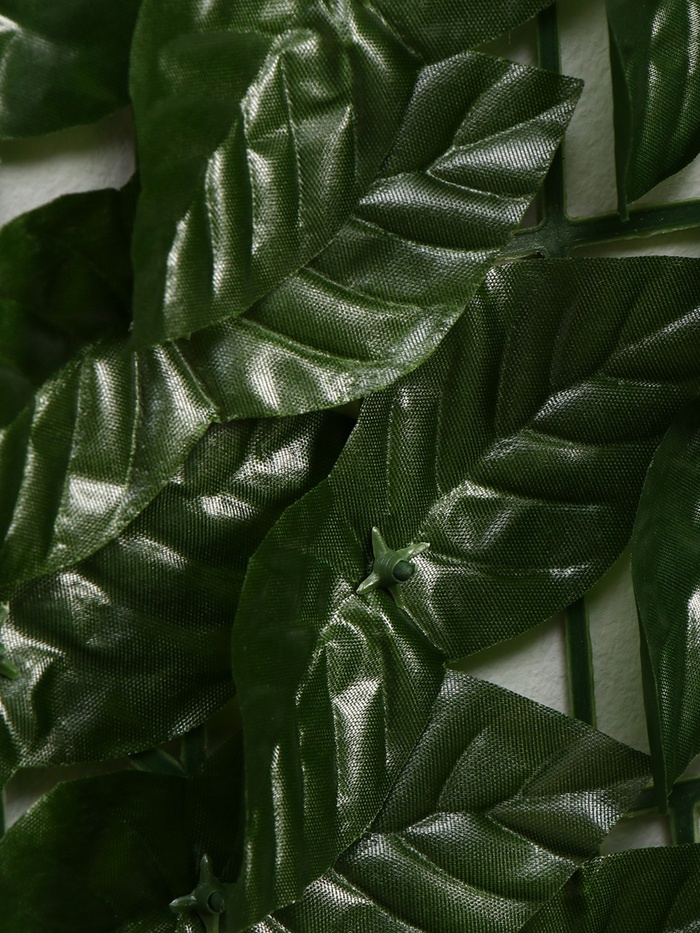 Изгородь в виде листьев станет не только красивым, но и практичным украшением вашего участка. Изделие выполнено из полиэстера и пластика. Такой материал обладает высокой износоустойчивостью и будет прекрасно выглядеть даже после длительного использования. Это изделие совсем не требует ухода.