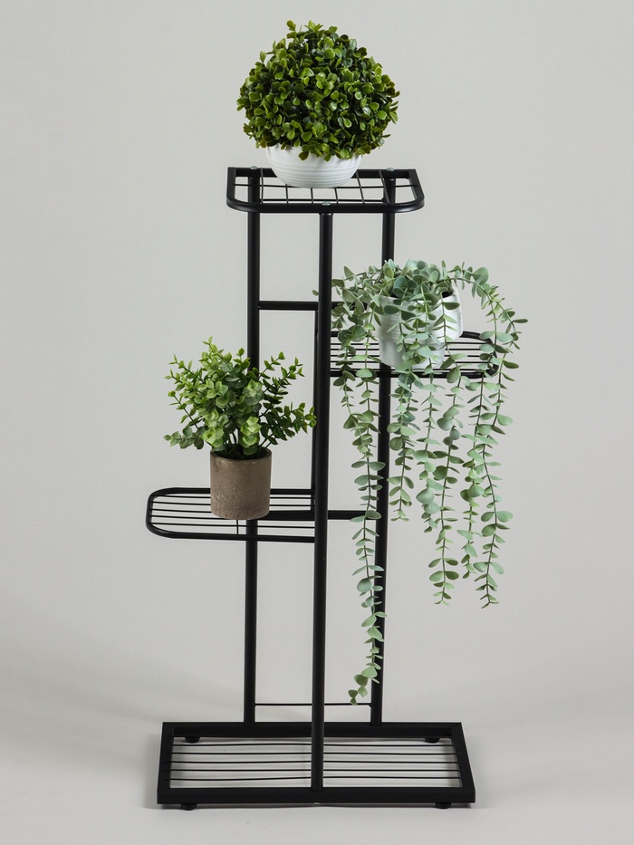 Подставка для цветов с 4 полками станет стильным решением для организации пространства на балконе, в прихожей или гостиной. Металлическая конструкция высотой 82 см обеспечивает надёжность и долговечность использования. Компактные размеры позволяют разместить горшочные растения без потери свободного места.