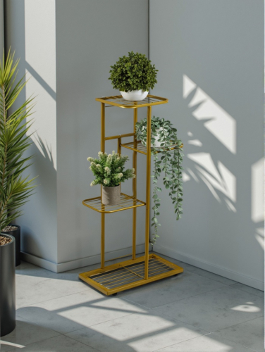 Подставка для цветов с 4 полками станет стильным решением для организации пространства на балконе, в прихожей или гостиной. Металлическая конструкция высотой 82 см обеспечивает надёжность и долговечность использования. Компактные размеры позволяют разместить горшочные растения без потери свободного места.