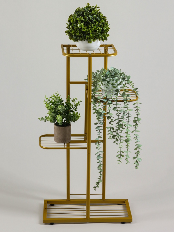 Подставка для цветов Greengo, 4 полки, 43×22×82 см, напольная, металл, цвет золотой