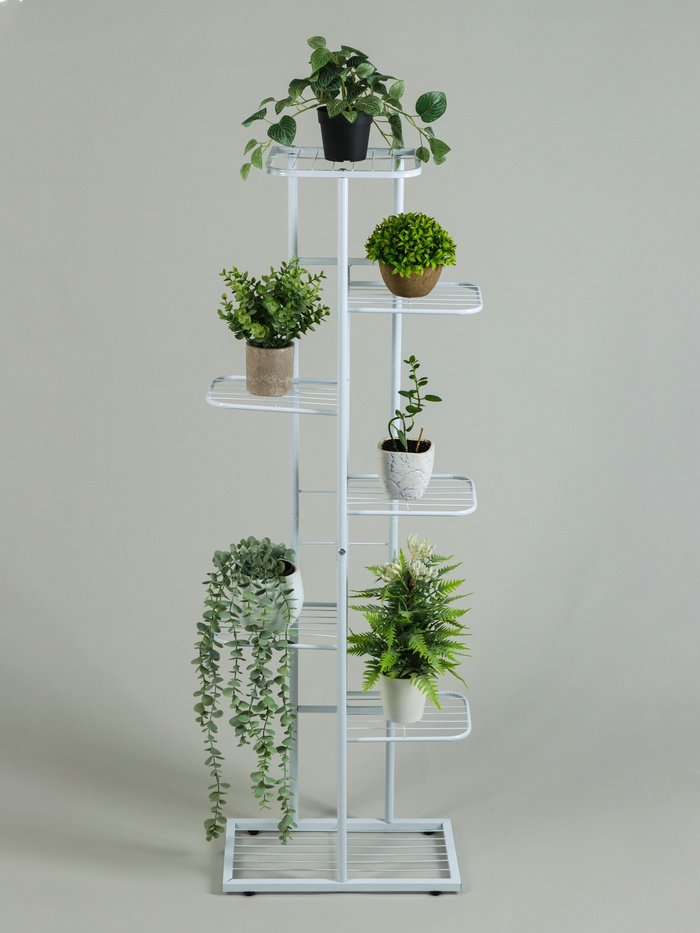 Эта стойка сочетает в себе практичность и современный дизайн. Её цвет визуально расширяет пространство, создавая ощущение лёгкости и порядка. Семь полок позволяют организовать зелёный уголок или упорядочить книги и аксессуары. Идеальный выбор для тех, кто ценит функциональность и стремится к гармонии в интерьере.