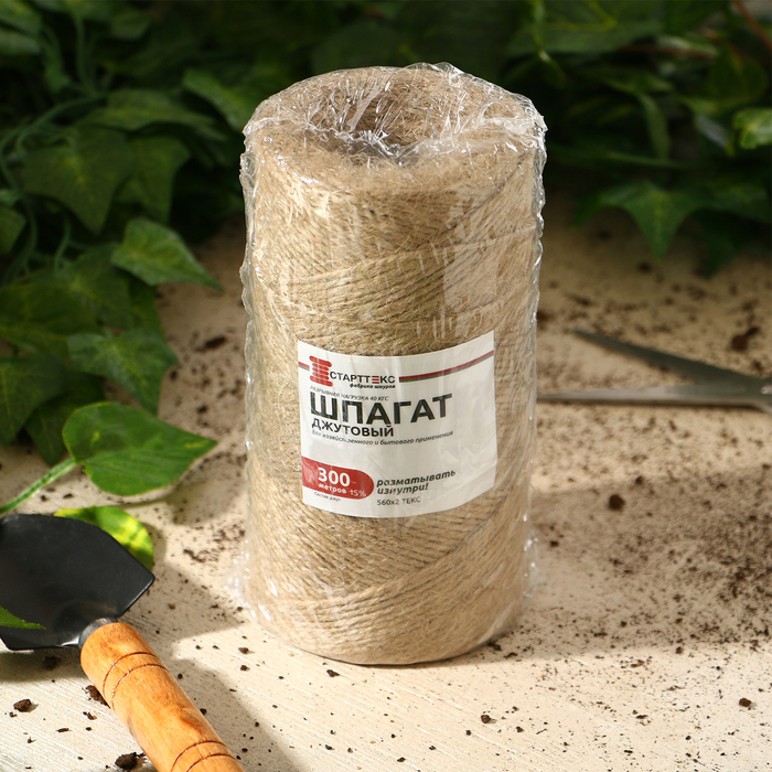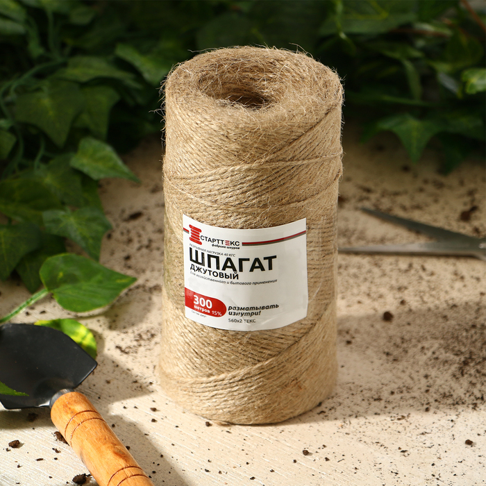 Шпагат джутовый для подвязки растений, 300 м, 1120 текс, 2 нити, джут, Greengo
