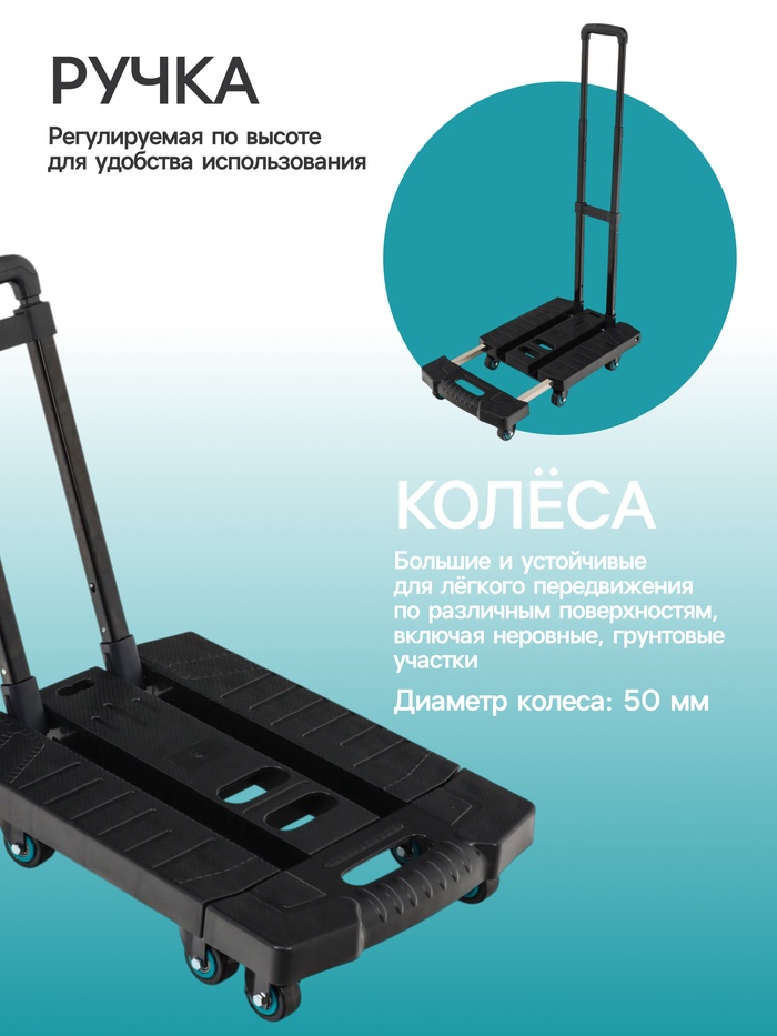 Тележка складная с раздвижной платформой, для перевозки грузов, нагрузка до 100 кг, телескопическая ручка, пластик, Greengo