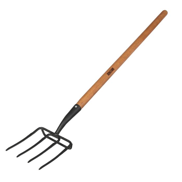 Вилы садово-огородные, 4-рогие, с упором, деревянный черенок, «Премиум», Greengo