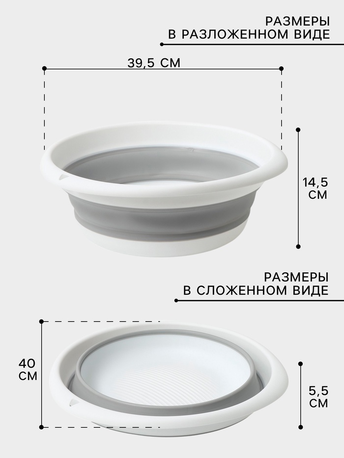 Таз складной «Флекс», 10 л, 39.5×40×5.5 см, смоки