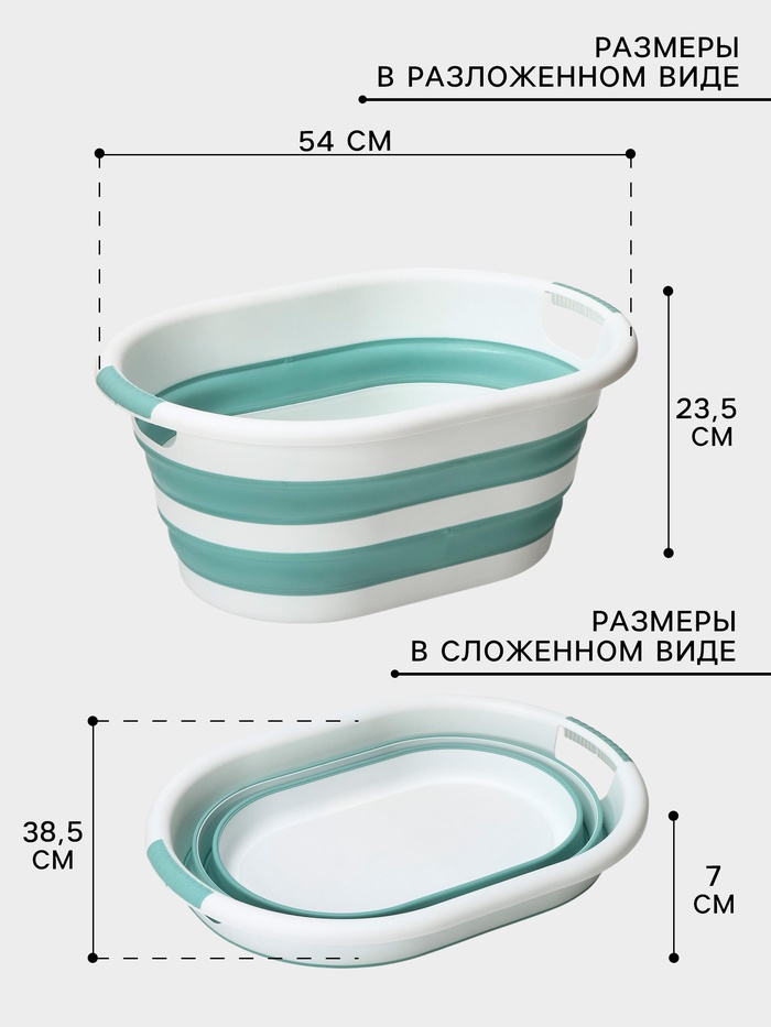 Таз складной «Флекс», 25 л, 54×38.5×7 см, морская волна