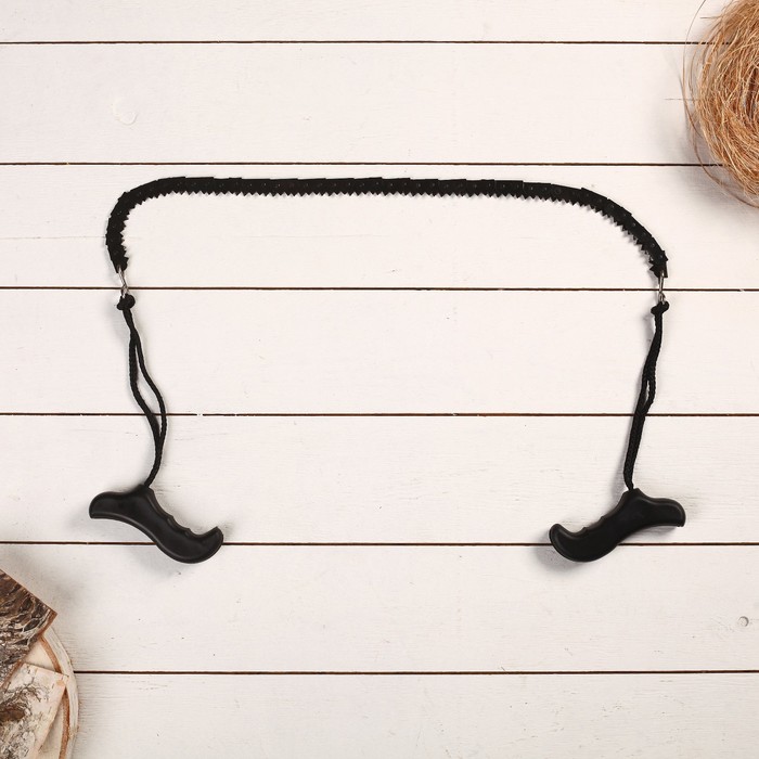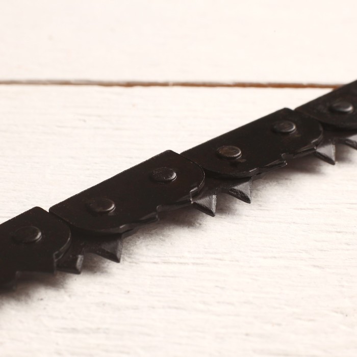 * Режущее полотно из цепи: Двуручная конструкция с зубьями на каждом звене пилит дерево при движении «на себя». Такой принцип работы снижает усилия и ускоряет распил сучьев или веток.