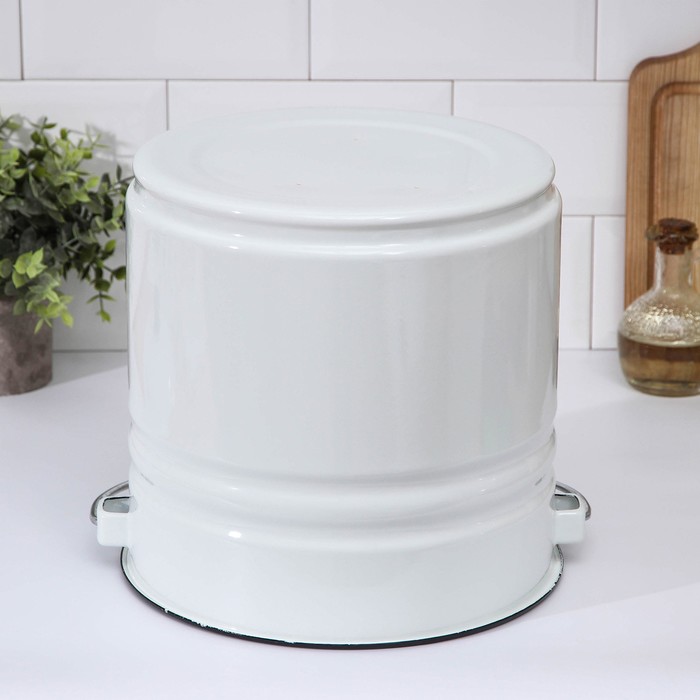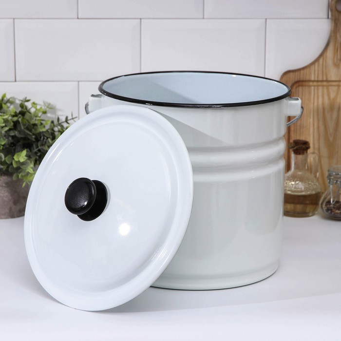Ведро эмалированное, 12 л, цельнотянутое, с крышкой, белое
